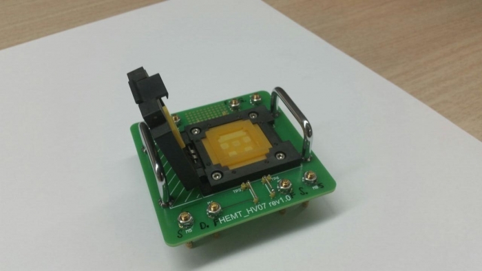 Test solutions for packaged power semiconductors require a robust setup. For contacting, the most important part besides the load board (as hardware interface to the tester) is the test socket. Since the device to be tested was a customised LGA package, also a customised socket had to be developed. The contacting was done via small spring pins. Due to the high currents, 4-wire or Kelvin contacting had to be used. In order to be able to transfer these currents safely during the test, several spring pins for Force and one each for Sense were placed on the large LGA pads (Drain + Source). For an extended temperature range, the test socket has an opening in the lid as well as small air flow channels. This optimises the temperature control by means of a thermostreamer and allows reproducible measurements in the range from -40°C to +150°C. As with the wafer test, high voltages of up to 2000 V are used to test the packaged components. For the safety of the operating personnel, several mechanisms are also implemented here that trigger immediate shutdowns in the event of incorrect operation. ![]() Figure 4: High-power test socket for GaN-HEMT in the package. (Source: RM) Test performance for GaN power semiconductors At the characterisation stage of GaN processes, parameters measured on the wafer such as contact and sheet resistance provide information about the quality. While a narrow distribution of the sheet resistance confirms the homogeneity of the 2DEG channel, ohmic contacts with an Rc < 1Ω∙mm indicate high-performance transistors. For production testing of GaN power semiconductors, the usual transistor parameters, such as drain-source leakage and RDS(ON), are used. What do you have to consider when testing GaN devices? A characteristic property of GaN is known as the "trapping effect" or "current collapse phenomenon". This behaviour degrades the achievable output power and linearity of the transistor. The undesired effect can be provoked by applying a high drain-source voltage in the off-state. A quality statement on this can be achieved during the test procedure by a voltage stress test via the detection of the RDS(on) change. For this purpose, the RDSon is determined first. Immediately afterwards, a drain-source stress voltage is applied for a few milliseconds in the off state directly followed by a second RDSon measurement. "Threshold shift" is another typical property of AlGaN/GaN high-electron-mobility transistors (HEMTs). This is caused by gate-source stress. To avoid measurement errors, it is therefore important not to apply high gate voltages during or before the threshold measurement. Conclusion: GaN power electronics require specialised packaging and test methods, both at wafer and component level. RoodMicrotec has developed the appropriate services for this. |