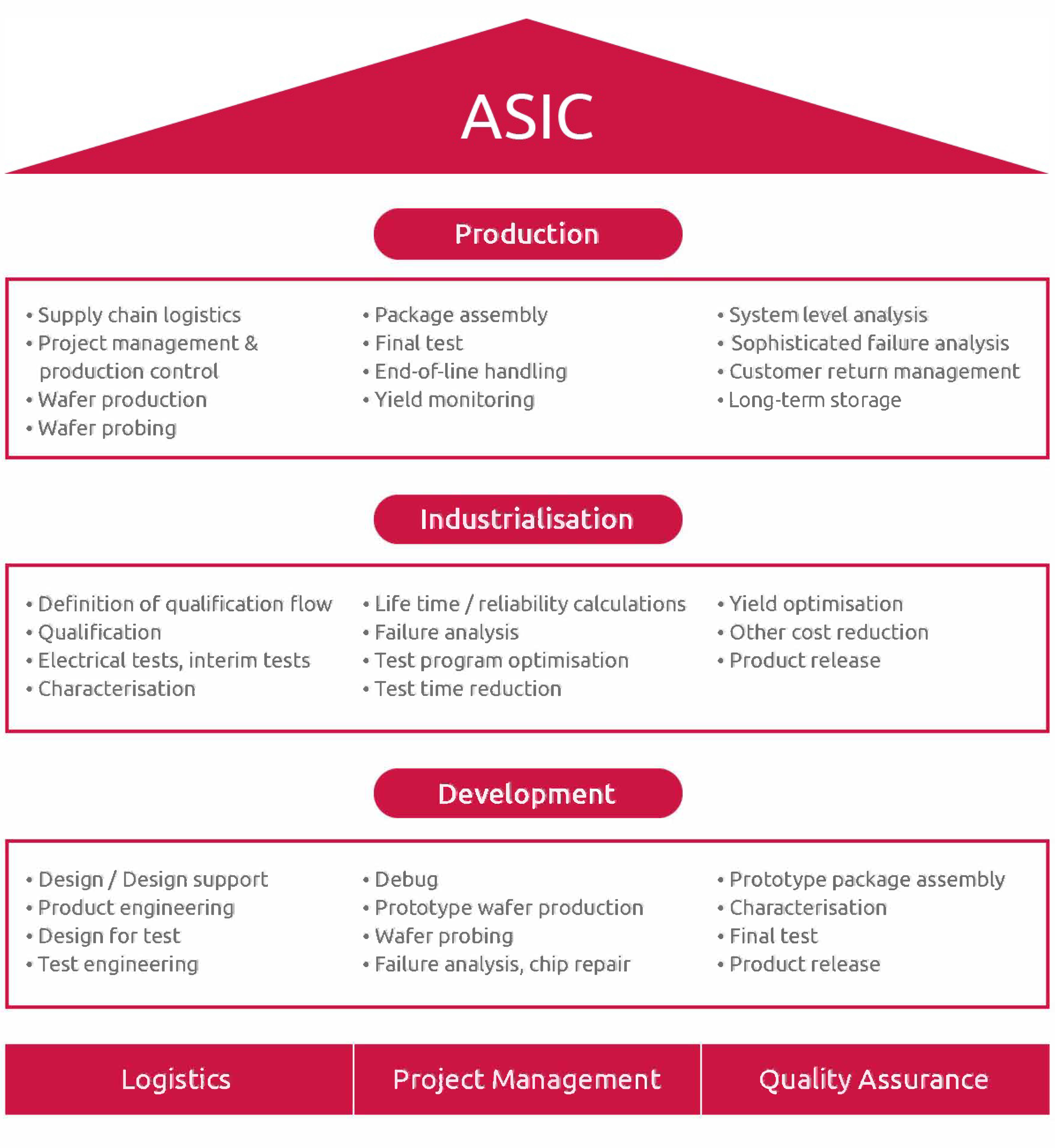 Overall there are three phases in ASIC projects – the development phase, the industrialisation phase and the production phase.